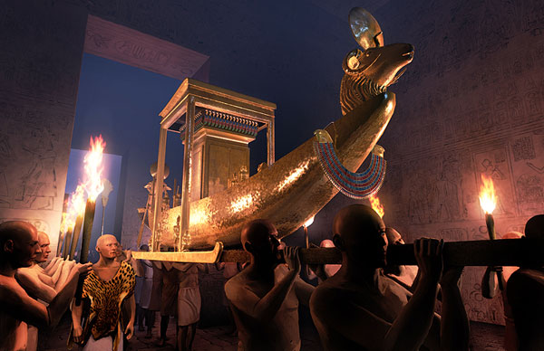 Aufbruch der Amunsbarke im Tempel von Karnak |